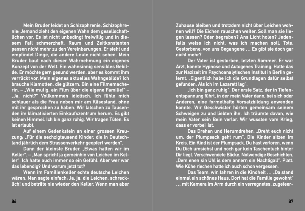 To make a film means, in the most original sense, to enter into a relationship with the world with a technical eye – to find a distance that isolates a subject in such a way that it can be dealt with. To apply this formula to one’s own family is an almost impossible undertaking. It is precisely in this impossibility that the strength of Katrin Eissing’s film reveals itself. She does not use the camera to show something she is sure of. She uses it as a tool of knowledge. In doing so, she makes us participants in an investigation whose subject matter can leave no one in the cold: At the field of family, we are all fellow researchers, always looking for a perspective that creates an overview. Katrin Eißing does not give in for a moment to the illusion of an overview and helps us to experience that entanglement is the only human attitude with which one can encounter one’s family. She goes with her camera directly into life, which also means: into the mistake- whereby once there, the word „mistake“ loses all meaning, just as many terms in general dissolve the longer we accompany this journey. What is education? Guilt? We remember our reproaches, assignments, deductions, our laboriously constructed genealogy, and things start moving in a painful way. „On the same planet“ is the rare document of an authentic search that becomes effective because our sympathy comes to coincide with the author’s participation. Not a „film“ that drives our feelings like a shepherd dog in the one allowed direction, but a record that follows complexly and sensitively feelings that are above any paper decision.